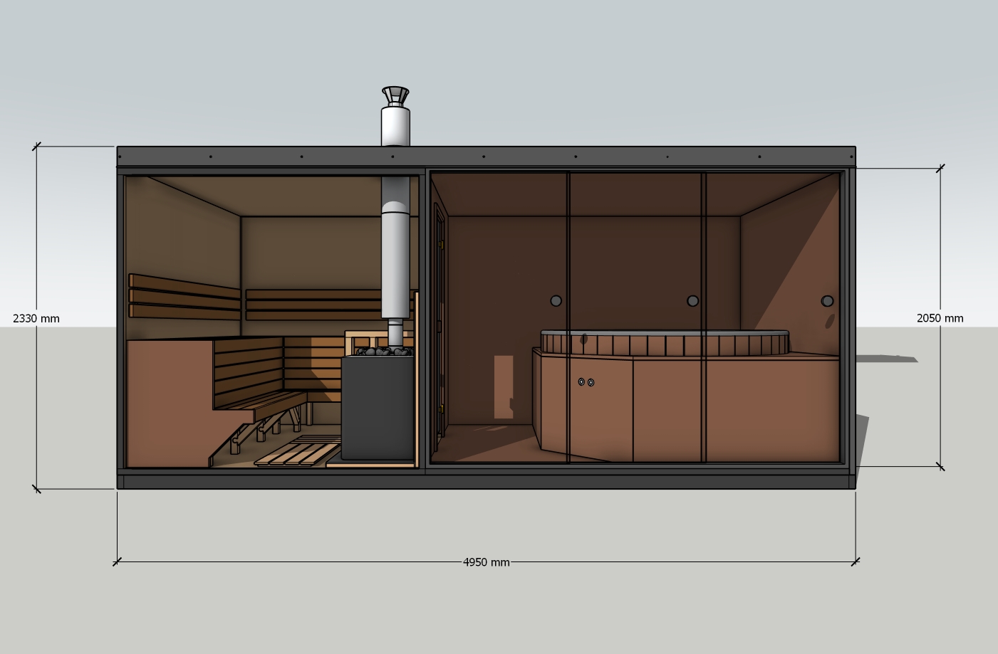 Nasza sauna modułowa składa się z dwóch modułów: